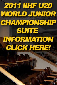 Make your 2011 IIHF World Junior Hockey experience one to remember with an exclusive suite at HSBC Arena! These luxurious and spacious suites are available to your group through our US Preliminary Package, our Canadian Premium Package, and our Medal Round Package. Each suite package provides an excellent panoramic view of the ice surface for you and your guests to experience the World Juniors like few others. Expand business relationships by entertaining clients, reward employees or celebrate this special event with family and friends.